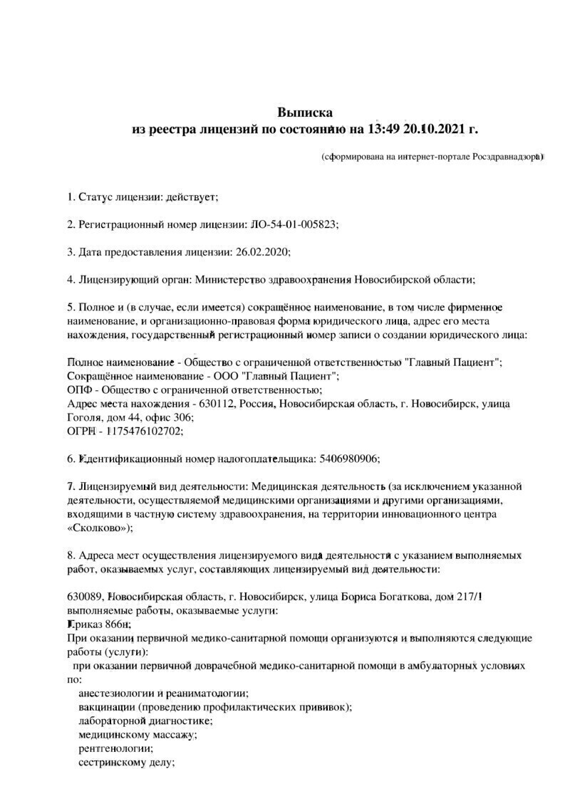 Диапазоны цен на приём врачей и специалистов, услуги и диагностику в Главный Пациент в Новосибирске.